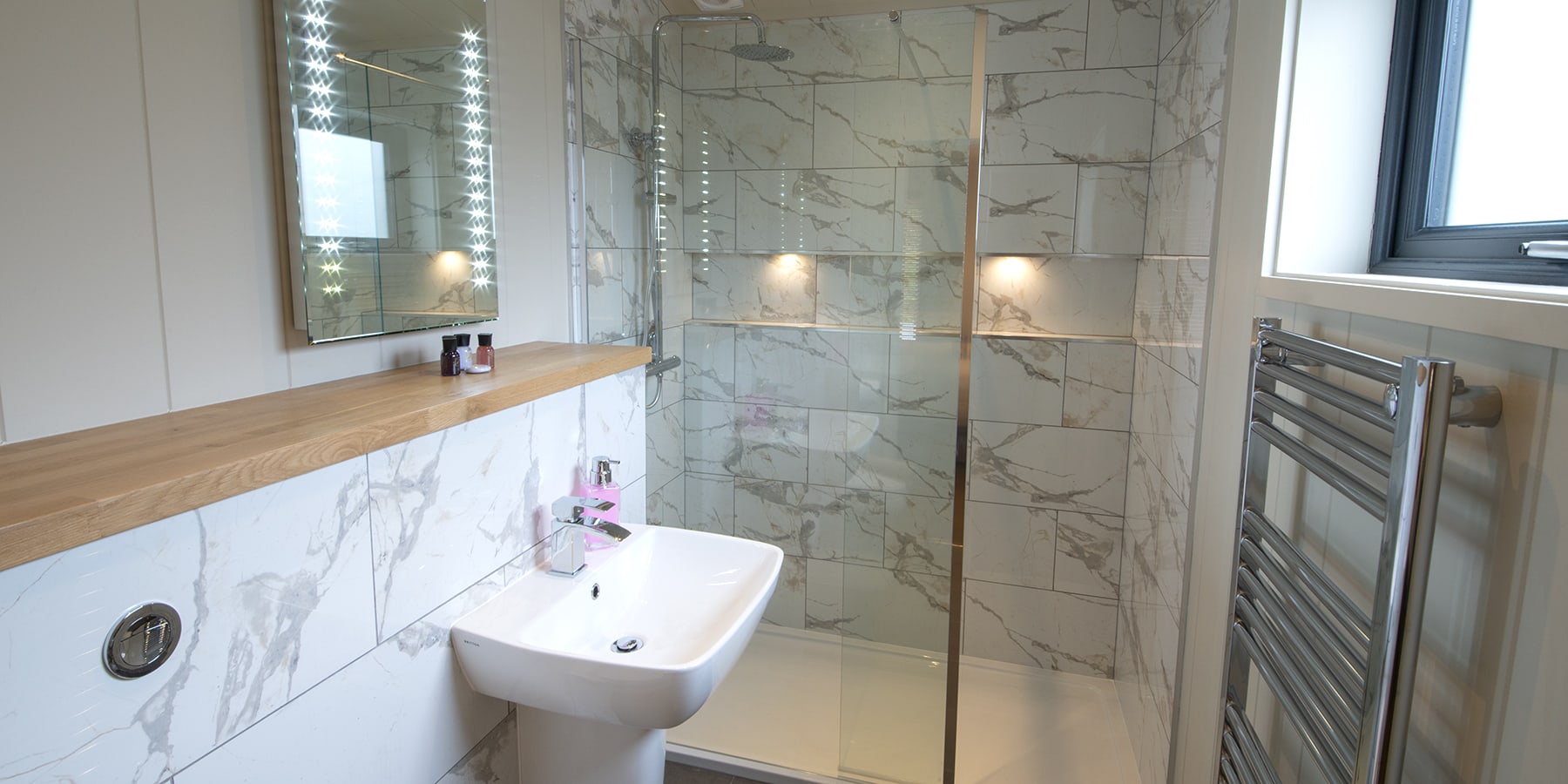 Entrance via a useful, heated boot room with hanging space for outdoor gear. The hallway opens into the contemporary and well-planned lounge/kitchen/dining room, which is spacious and light with oak flooring and two sets of double glass doors leading out onto the decked veranda, to enjoy the open countryside and fabulous private hot tub. The beautifully furnished lounge area is warm and cosy with two stylish, leather settees and a wall-mounted 40-inch flat-screen TV with Freeview, DVD, music system with iPod docking station and wireless broadband. The dining area as a beautiful solid oak dining table and comfy chairs and are easily accessible to the superbly fitted open plan kitchen with everything you need to make self-catering a pleasure. The luxurious master bedroom with en-suite has a king-size bed and beautiful soft furnishings. There are fitted carpets and fitted wardrobes with very generous hanging space and shelving. The fully tiled en-suite has a superb rain -shower, basin, wc and heated towel rail. The second bedroom is attractively furnished in fresh, spring tones with a full length window and has fitted carpets and spacious fitted wardrobes. This bedroom can be made up of either two twin beds or a super king bed. The main bathroom is tiled with a rain shower over the bath, basin, WC and heated towel rail. There are complimentary toiletries provided in both bathrooms, along with guest slippers for your comfort.
