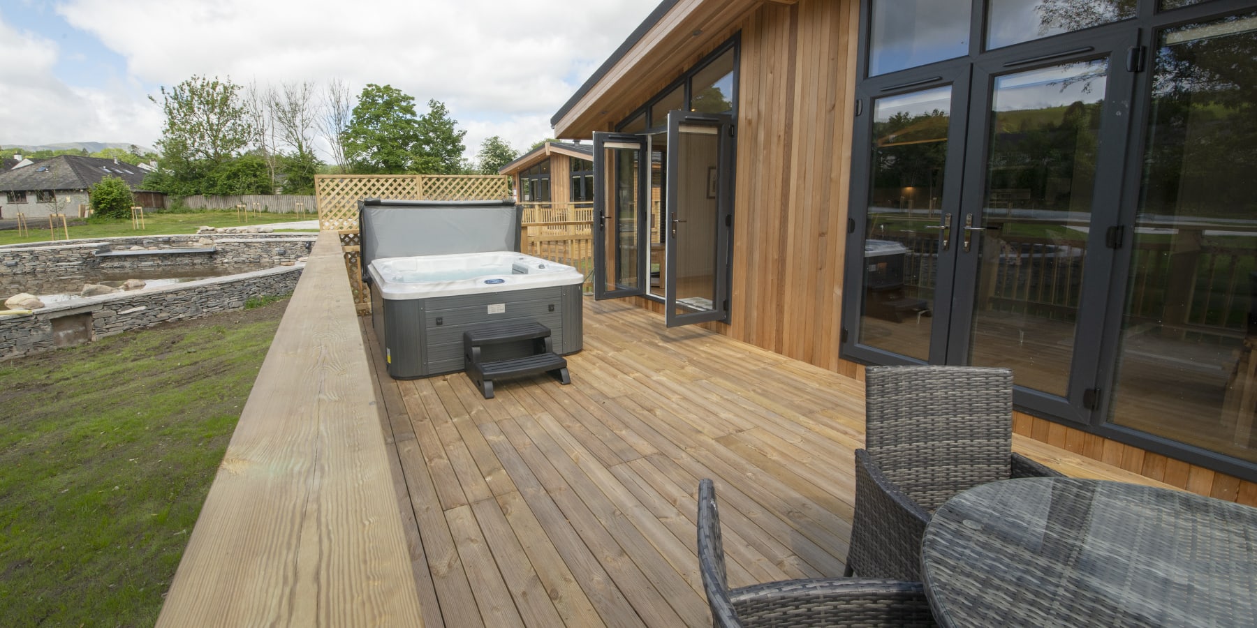 A convenient village location, near to the restaurant, overlooking a relaxing water feature and with picturesque views across to Grizedale Forest and the fells beyond. This tastefully furnished lodge provides the perfect holiday retreat for couples and families. The spacious decked veranda complete with a private hot tub is the perfect place to unwind.